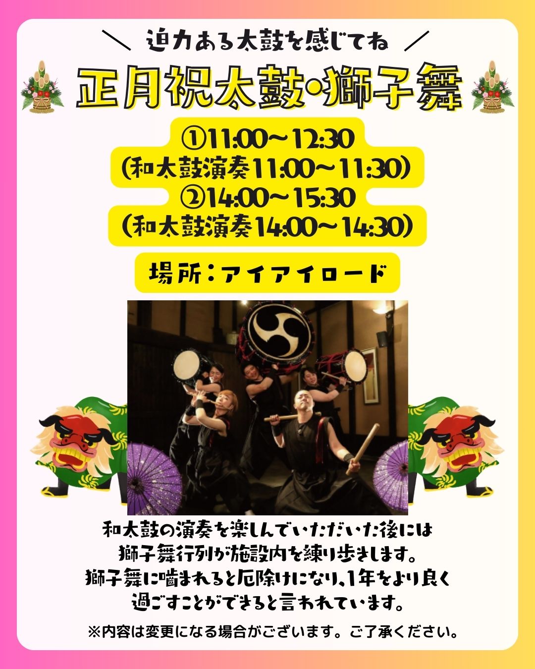 大迫力の正月和太鼓や獅子舞がアイランドアイに登場!?