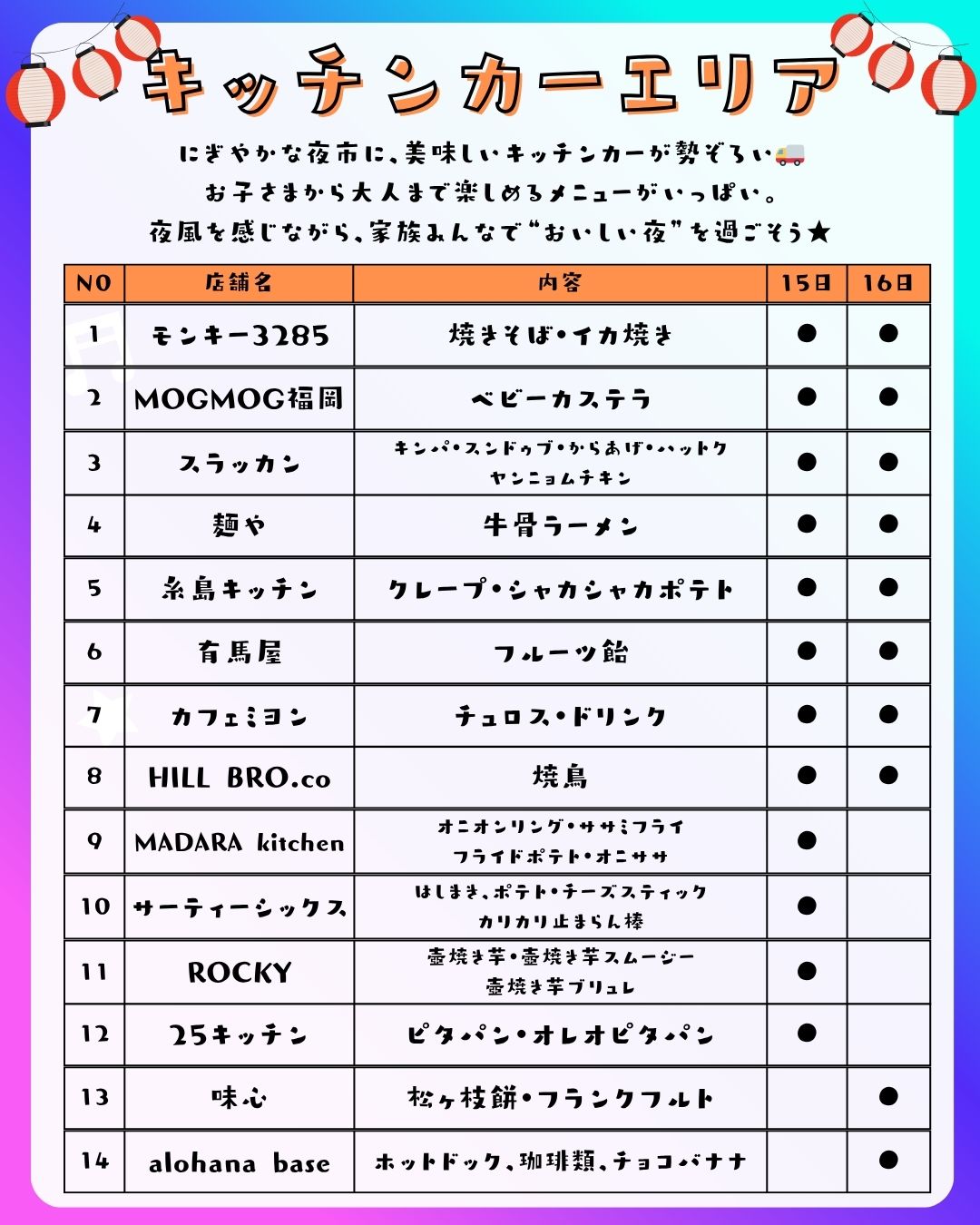 11/15(土)・16(日) 福岡夜市開催!!