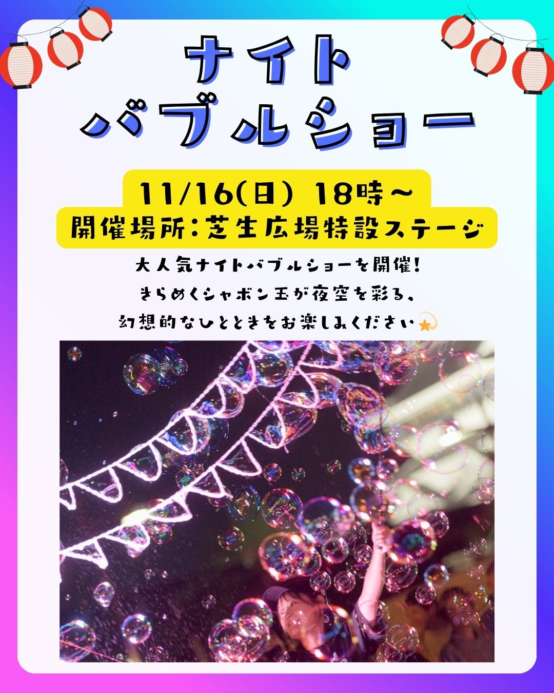 16日は大人気!ナイトバブルショーも開催🎉