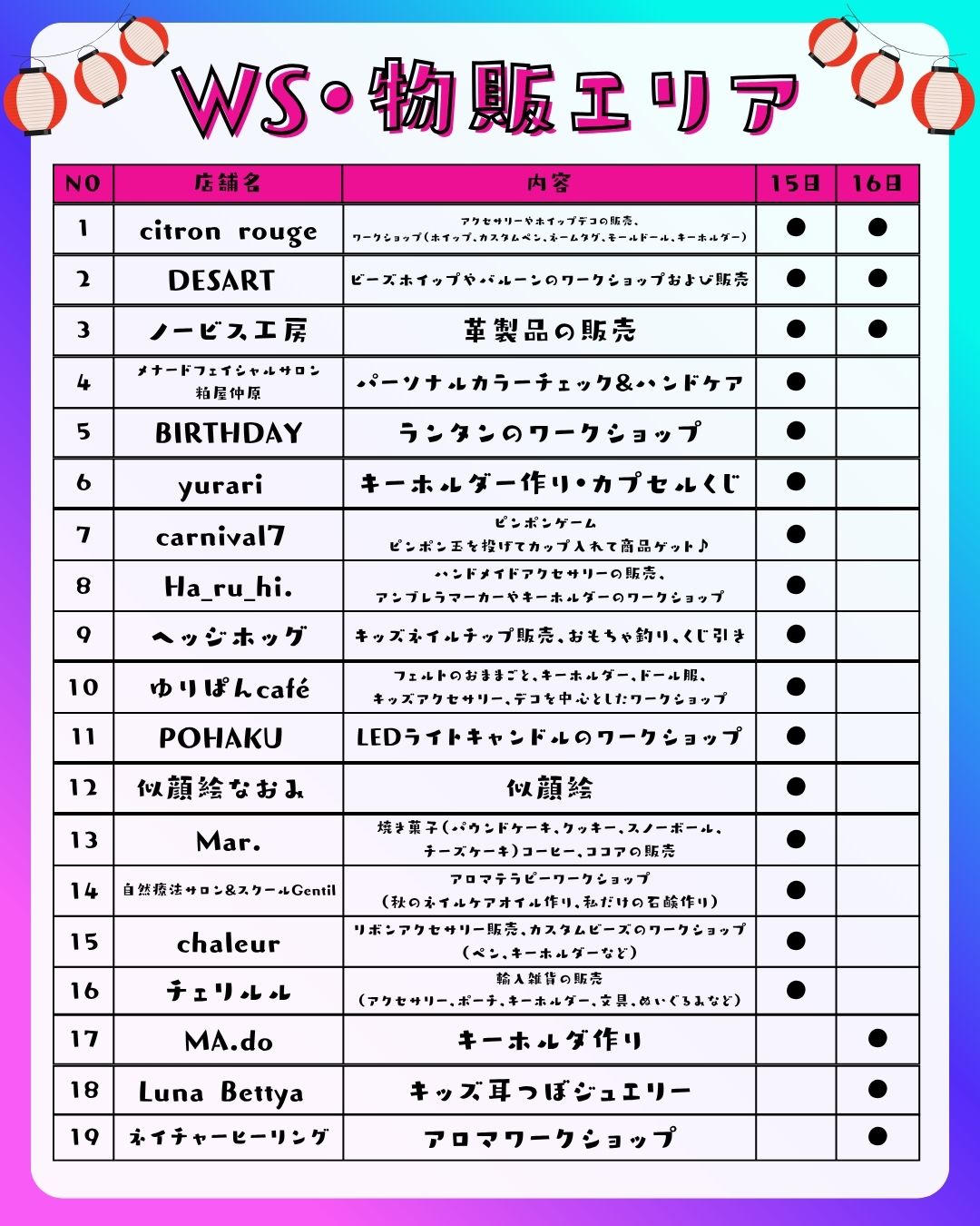 日時:11/15(土)・16(日) 15:00~20:00