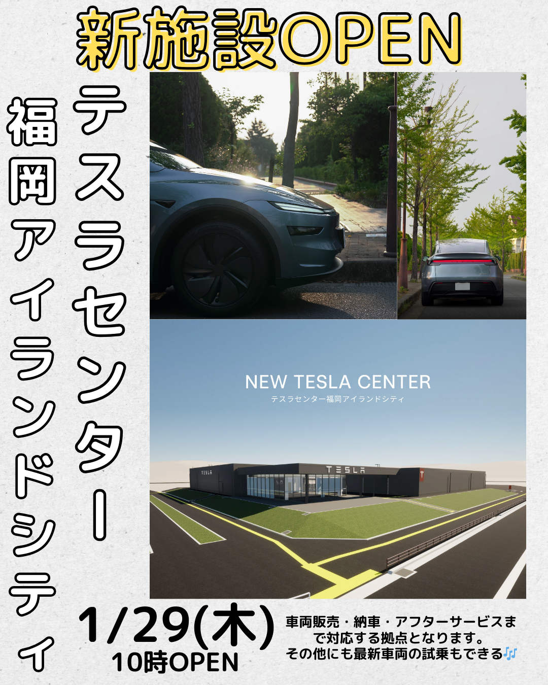 更新日:2026/01/10【新施設OPEN】1月29日にアイランドアイノースエリアにテスラセンターがOPEN!!