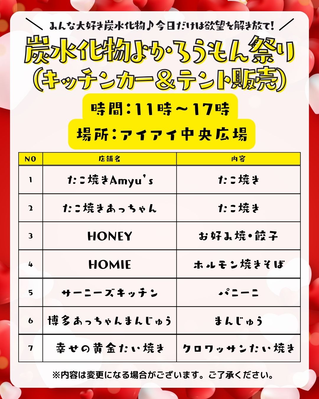 みんな大好きなもの大集合!炭水化物よかろうもん祭りも初開催!🍚🍜🥖