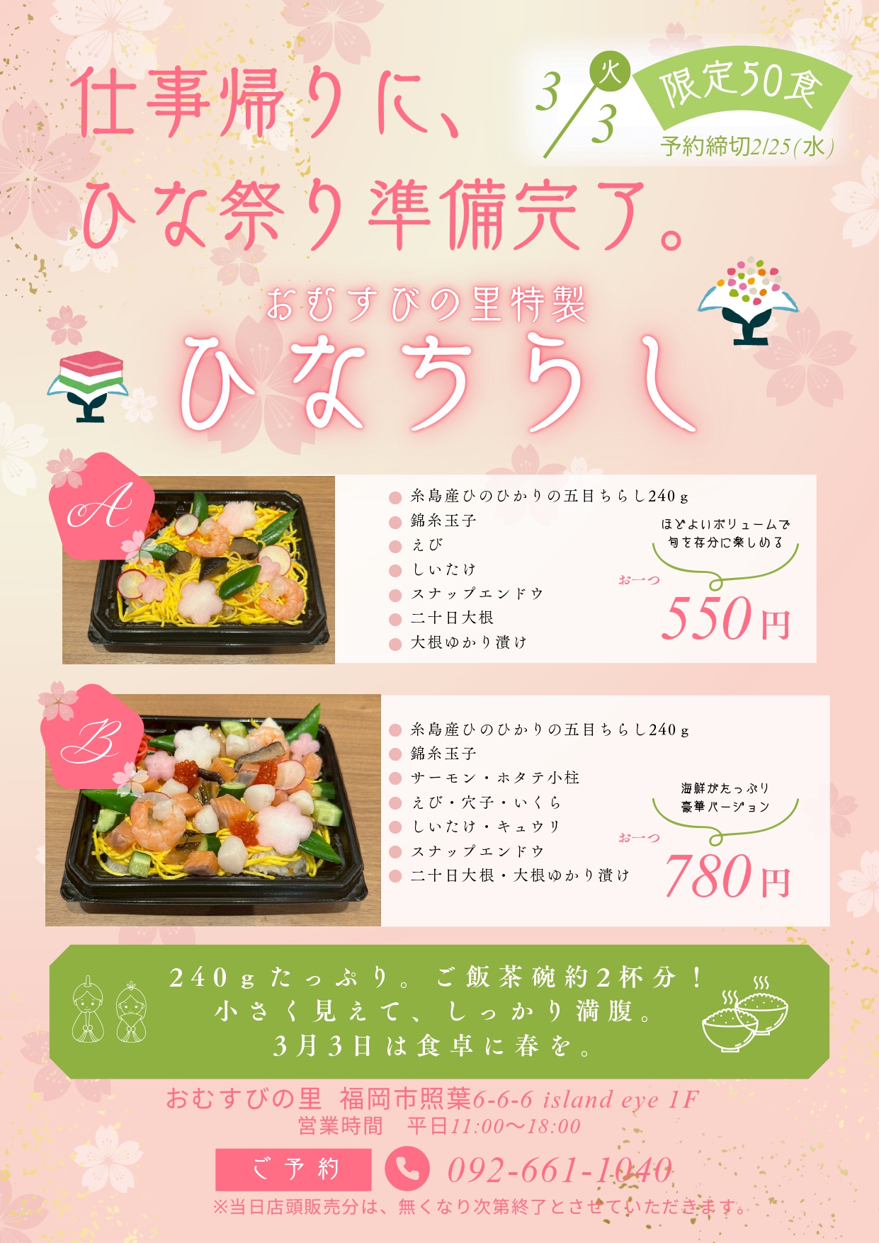 更新日:2026/02/17【おむすびの里】限定50食!予約必須の特製ひなちらし