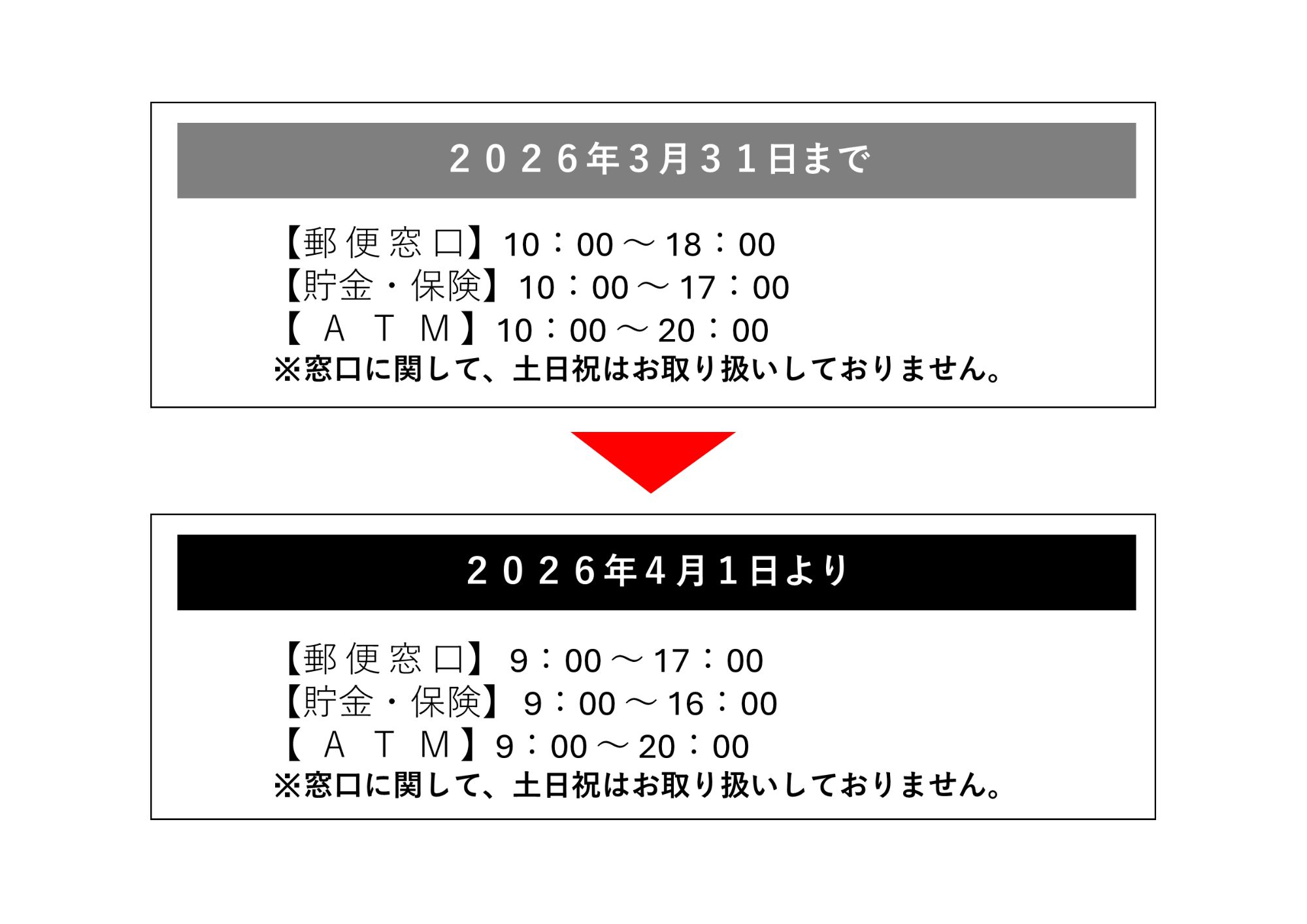 ※窓口の営業時間については、これまでと同じく、平日のみの取り扱いになります。