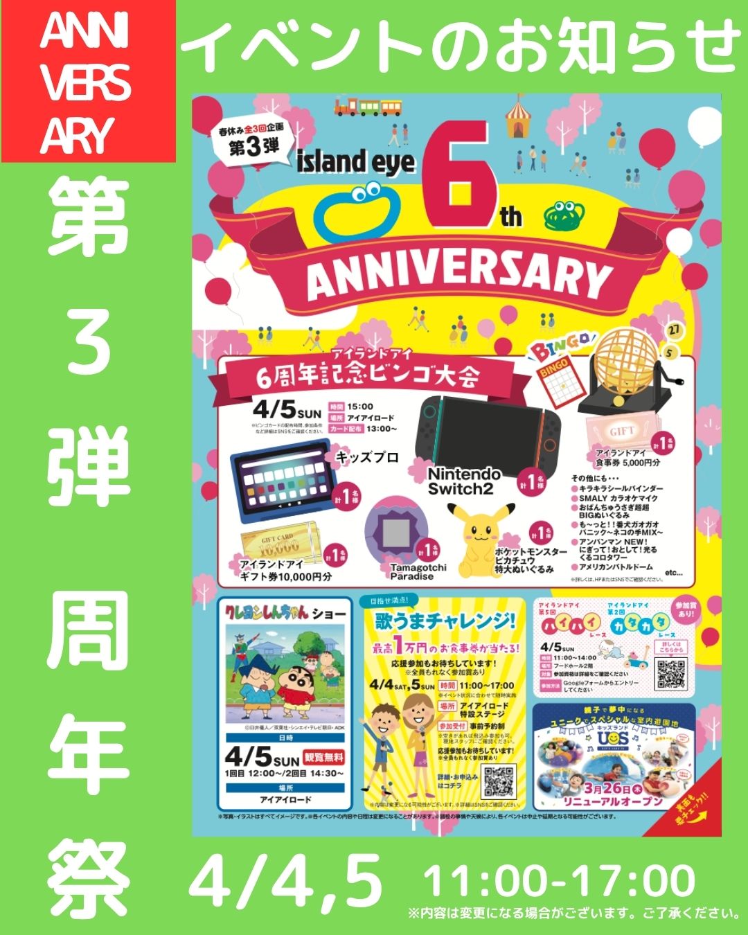 更新日:2026/04/03《4/4(土)・5(日)》【第三弾】6周年記念イベント開催!5日は豪華景品が当たるチャンス!ビンゴ大会も開催!?
