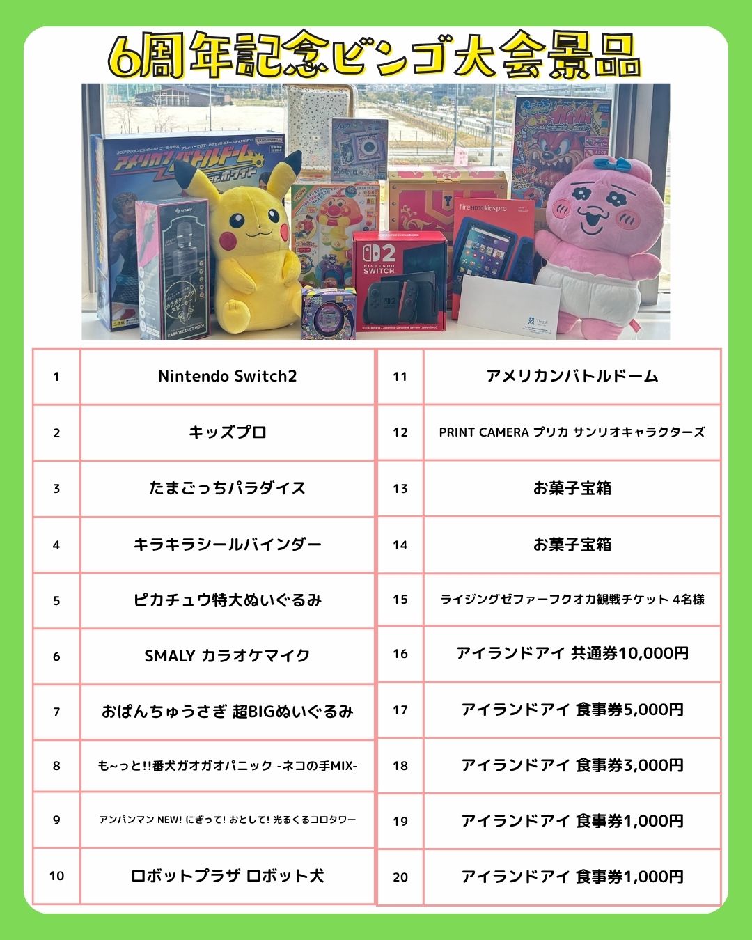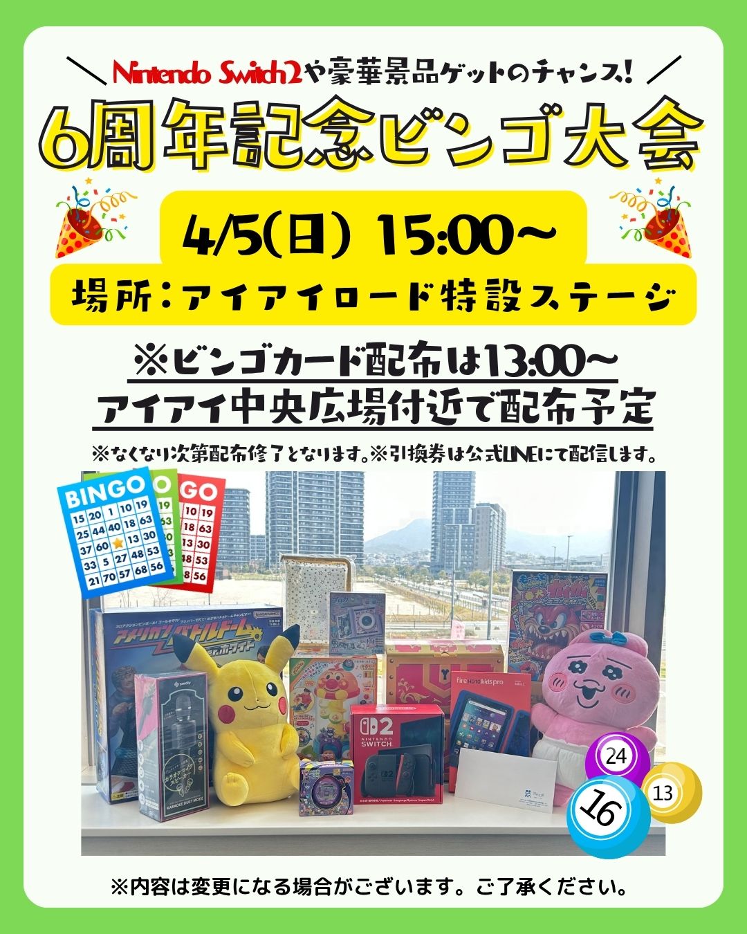 5日は豪華景品GETのチャンス!?6周年記念✨ビンゴ大会を開催!