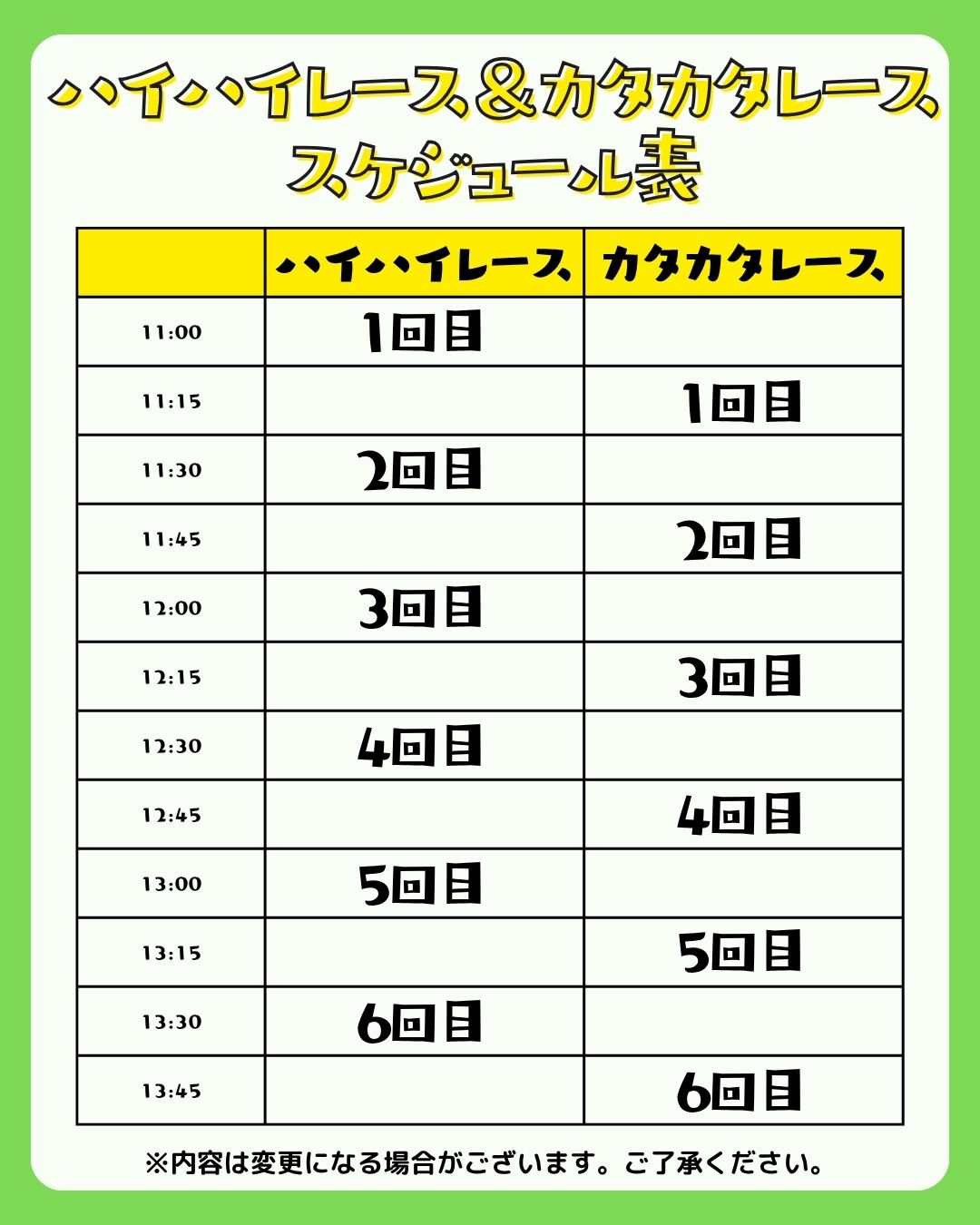 - 制限時間内に全員がゴールできなかった場合は、ゴールに近いお子さまを1位として決定。
