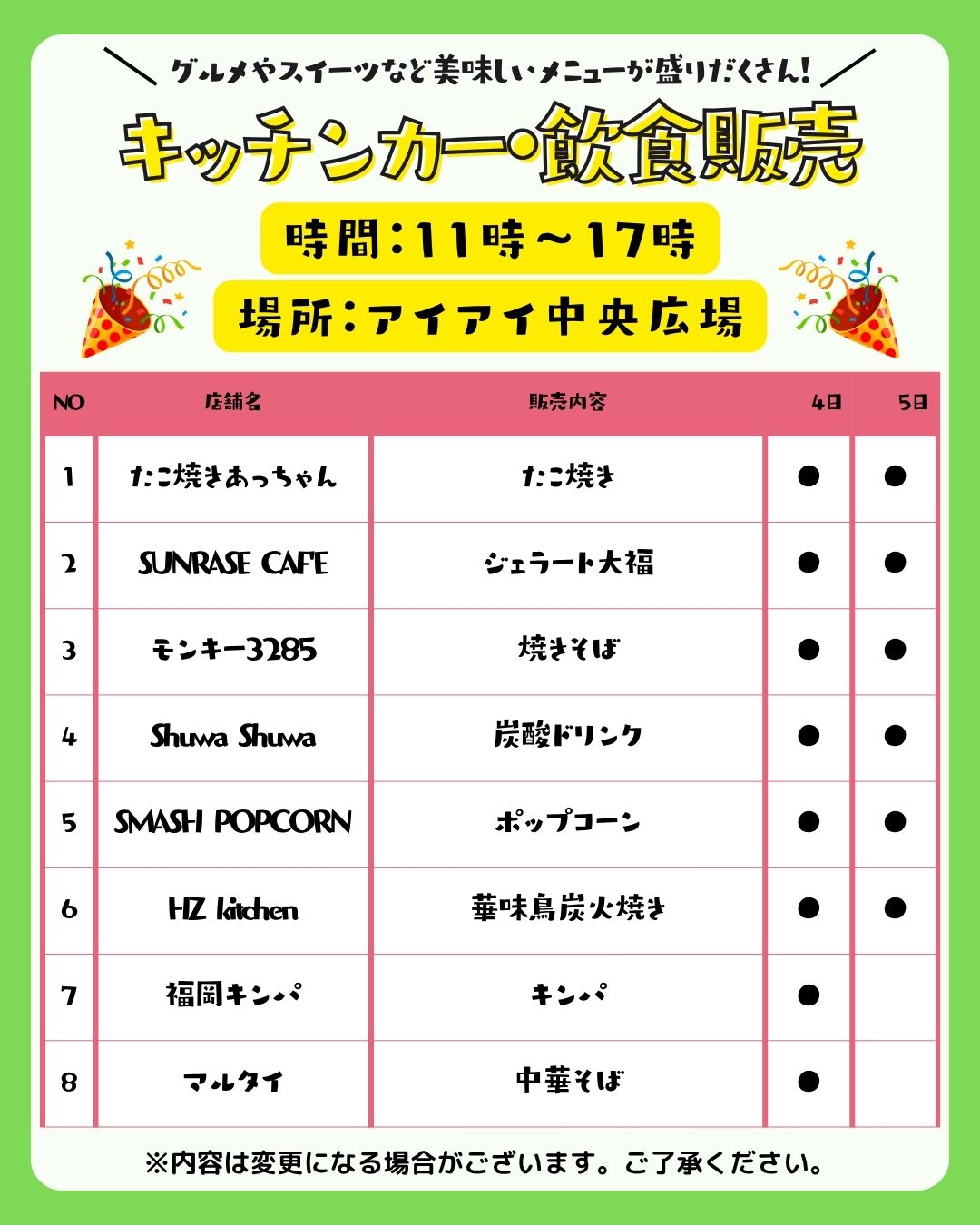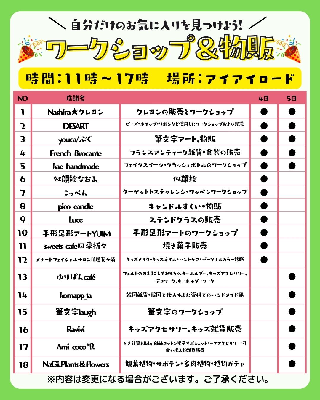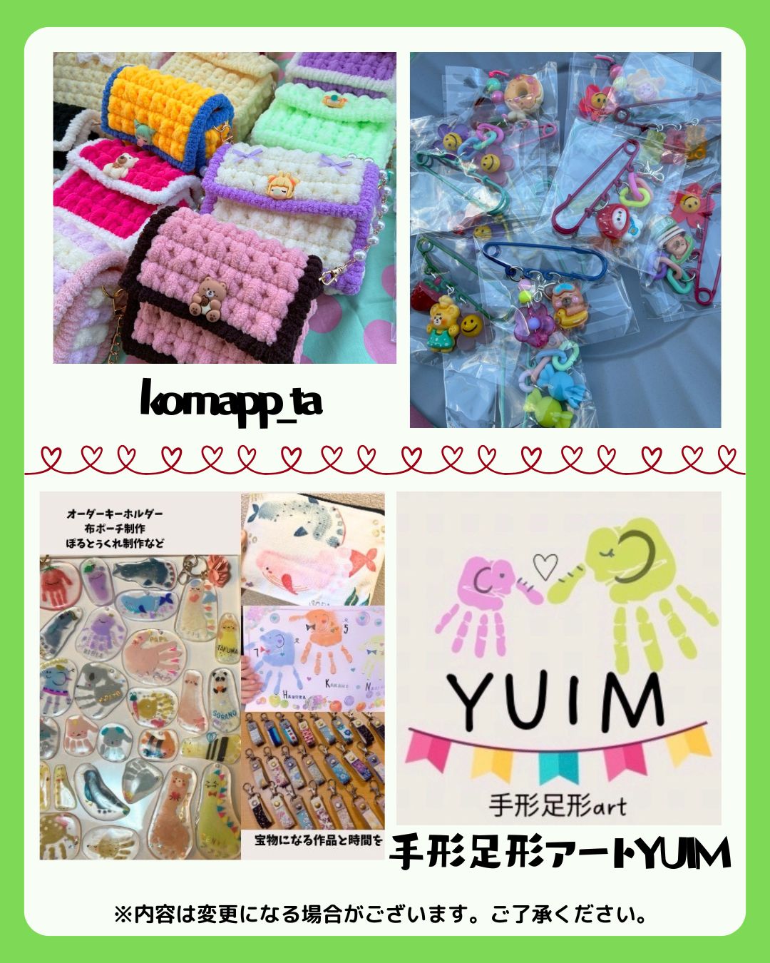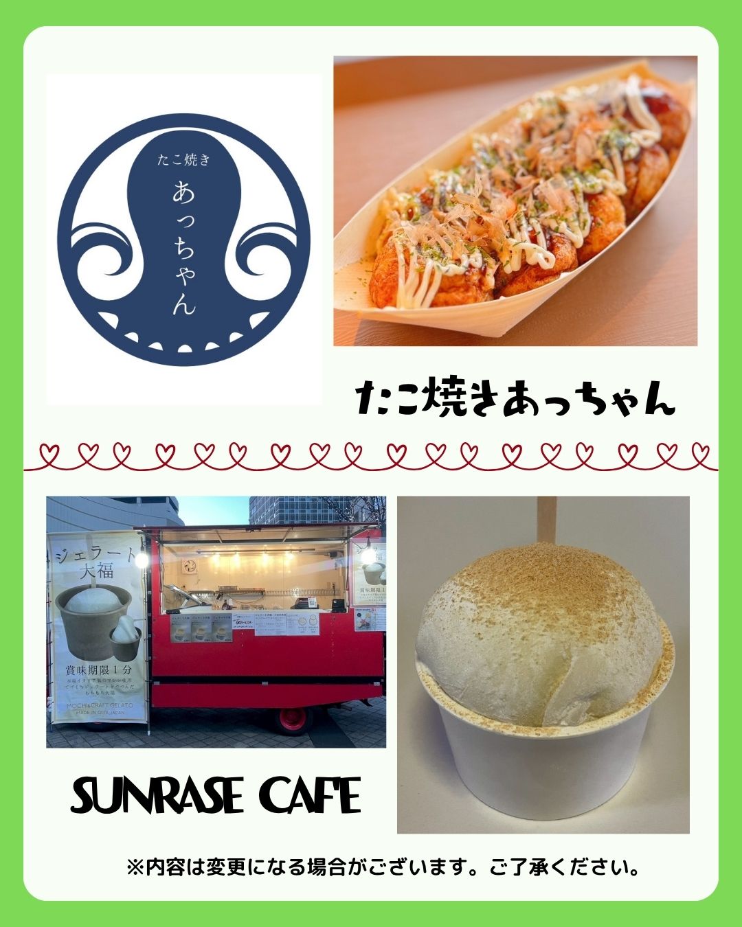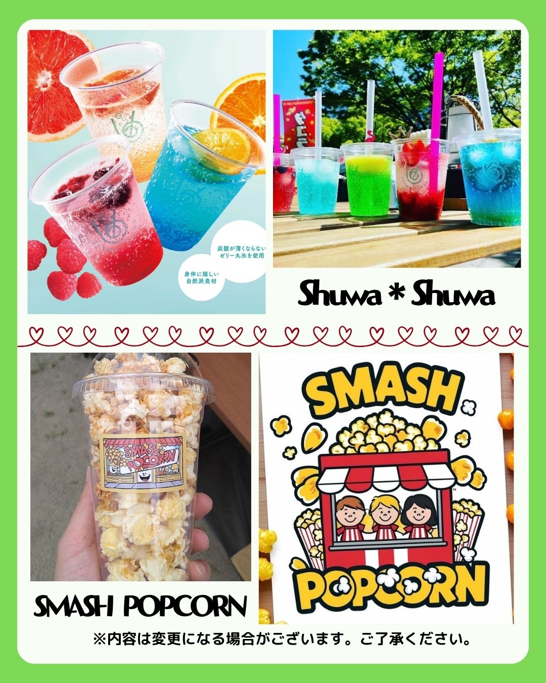 また、キッチンカー・物販・ワークショップ・縁日など、2日間でのべ40店舗以上が出店します✨